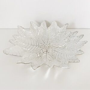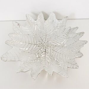 Vintage Akcam Glass Leaf Bowl – White and Silver, Handmade in Turkey, 11”