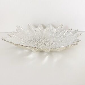 Akcam Glass Leaf Bowl – White and Silver, Handmade in Turkey, 11” Diameter