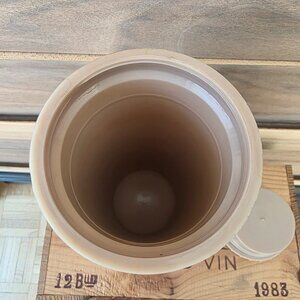 It's coming into soup and mulled wine season... keep everything warm with this vintage but rarely used thermos. Tan, ivory, with red accented plaid.