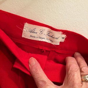 Vintage Alan G fashions slacks, size 4, colour red, like new, polyester blend, bleated, pockets, 28" in length from inseam.