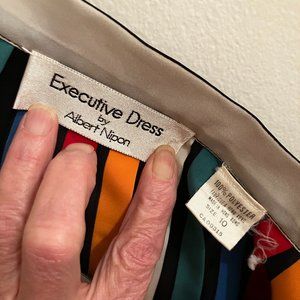 Vintage Albert Nipon skirt set, size10, colour black with multi coloured stripes, polyester, like new, i liked this outfit so much i bought it for my mom. i always hoped but that time came and went with me only wearing it once