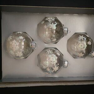 Vintage Alderbrook Accents Set of 4 Glass Ornaments with Iridescent Snowflakes