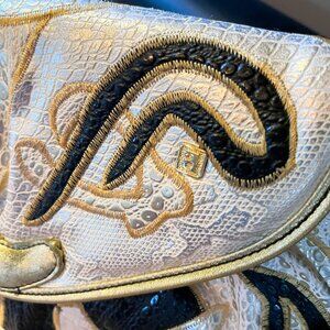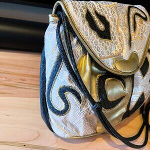 Vintage Alentino LIKE NEW NAS ART bag patch soft textured crossbody gold print