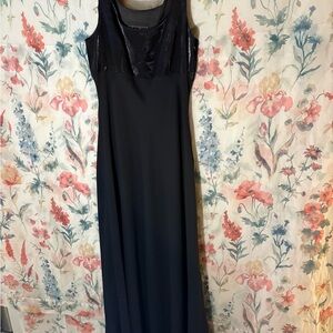 Vintage Alex Evenings Blue Sleeveless V-Neck Maxi Gown