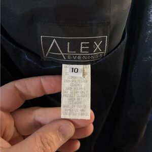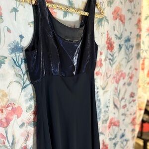 This stunning blue gown by Alex Evenings features a sleeveless design with a sophisticated V-neckline, perfect for cocktail parties or a night out. The flowing maxi silhouette adds an elegant touch, making it a timeless addition to any wardrobe. see photos for one small stain.