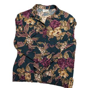 This vintage blouse from Alfred Dunner is so gorgeous. The pattern and the colours are rich and lush. Unique but still extremely wearable. I absolutely debated keeping this one--and I still am, so snap it up before I change my mind!