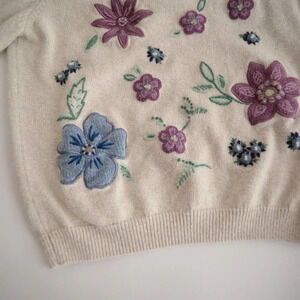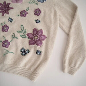 Vintage Alfred Dunner Cream w Purple & Blue Floral Knit Mockneck Sweater PL