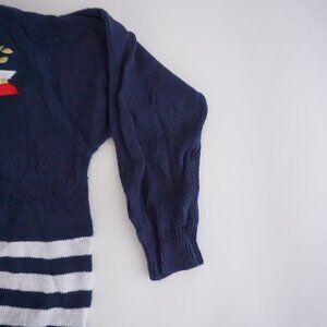 Vintage Alfred Dunner Navy Nautical Flag Stripe Sweater Rope Star Embroidery M