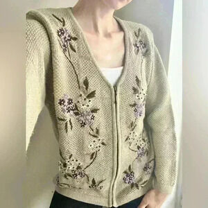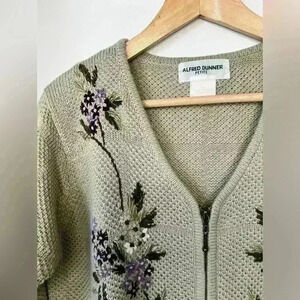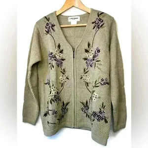 Vintage Alfred Dunner Womens Floral Embroidery Zip Up Cottagecore Cardigan Petite Large