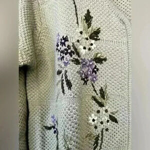 Vintage Alfred Dunner Womens Floral Embroidered Knit Cottagecore Cardigan Large