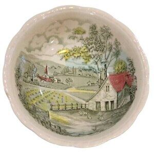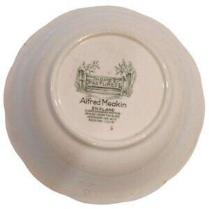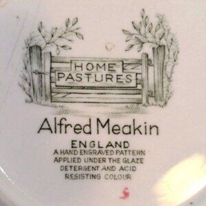 Add a touch of timeless elegance to your dining experience with this exquisite Vintage Alfred Meakin 'Home Pastures' Round Ironstone Vegetable Serving Dish. Crafted in England during the 1960s, this multicolor transferware piece is a testament to the fine craftsmanship and artistic tradition of the Alfred Meakin pottery. The 'Home Pastures' design captures the serene beauty of pastoral life, bringing a sense of nostalgia and charm to your table setting. Made from durable ironstone, this serving dish is not only beautiful but also practical for everyday use or special occasions.