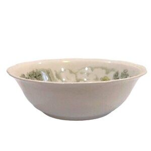 Measuring approximately 8.5 inches in diameter, this versatile dish is perfect for serving vegetables, side dishes, or even as a centerpiece for your dining table. The vibrant, multicolored transferware pattern is a standout feature, showcasing intricate details and a rich color palette that complements any decor.