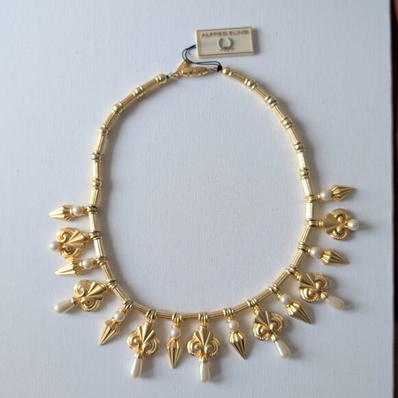 Vintage Alfred Sung Gold-Tone Necklace with Faux Pearls โ New with Tag