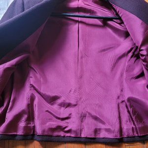 Plummy-Purple corduroy w hunter/emerald green collar and pocket/button detail