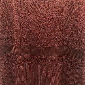 Beautiful dress with a shear front with an acetate lining. Deep copper color. Knee length. Great condition. No rips, tears or stains.Size 8. Made in Canada.