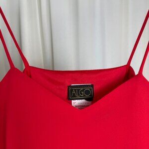 Vintage red slip dress by Algo with slim spaghetti straps and a bias-cut silhouette. Made in Canada, likely 1990s–early 2000s.