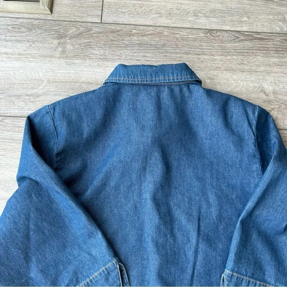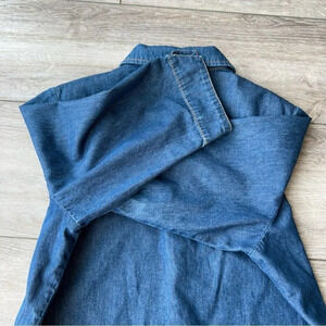 Vintage Alia Chambray Half Sleeve Embroidered Button Shirt with Fringe Hem
