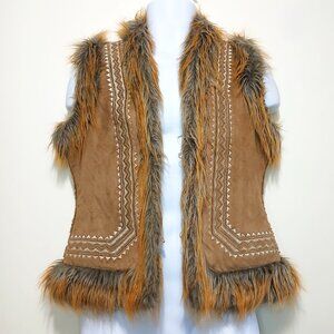 Vintage Alibi Embroidered Suede & Fur Aztec Print Waistcoat Vest Jacket Size 13
