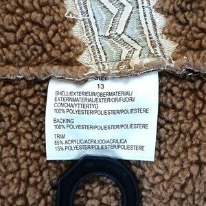 Elevate your outfit with this vintage Alibi embroidered suede and fur Aztec print waistcoat vest jacket in size 13. Made of polyester with a mid-length design, this sleeveless jacket features a hook & eye closure for easy wear. The brown color and intricate Aztec and cowboy-themed embroidery add a unique touch, perfect for travel, parties, casual outings, or workwear. Stay stylish and cozy with the fur trim accents, making this jacket a standout piece for any season.