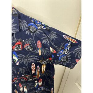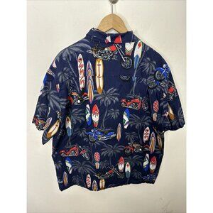 Vintage Ali’i Fashions Men L Biker Surfing Hawaiian Shirt Short Sleeve