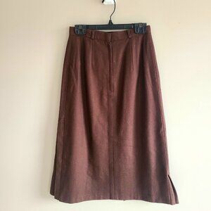 Vintage Alliage brown wool skirt with front bottom pleated details.