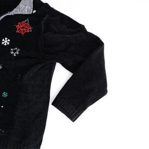 Vintage Allison Daley Black Zip Cardigan Holiday Snowflakes Festive Sweater L