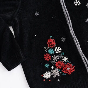 Vintage Allison Daley Black Zip Cardigan Holiday Snowflakes Festive Sweater L