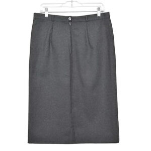 Vintage Allure 100% Wool Grey Midi Skirt Pencil Front Slit Size Medium