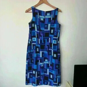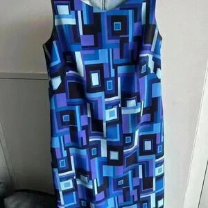 Vintage Allure 90s Blue Purple Geometric Square Abstract Sleeveless Dress 8