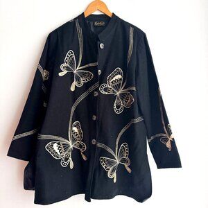 Vintage Allure Black Gold Butterly Print embroidered Blazer Jacket XL.