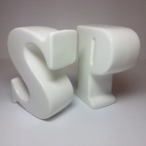 Tags: Home, Kitchen, Kitchen Tools, Dining, Dinnerware, Serveware, Accents, Decor, Salt and Pepper, Ceramic, Vintage, retro, collectible, alphabet, letters, minimalist, contemporary, white