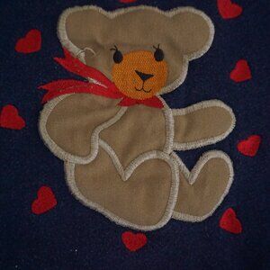 Vintage Alpine Express Navy Teddy Bear Heart Sweatshirt Cabincore Retro XL