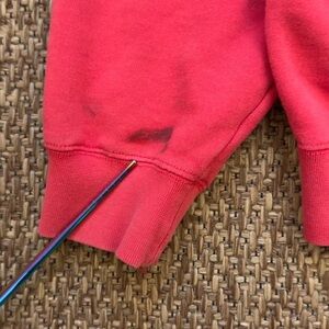 Very good preowned condition - some stains on left sleeve, right shoulder, left pocket, small hole right pocket see photos