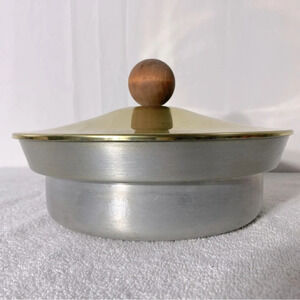 Vintage Aluminium Pan Sauce Pan With Gold Tone Lid & Wood Handles