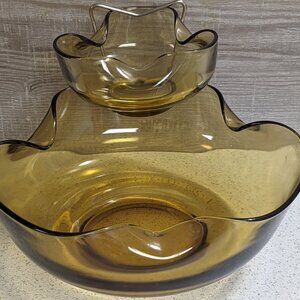 Vintage Amber Anchor Hocking 3 Piece Chip & Dip Set
