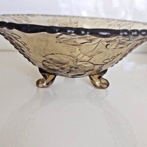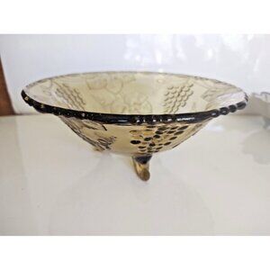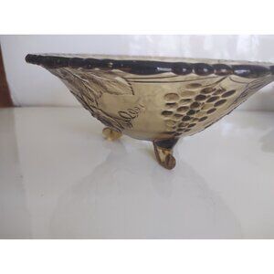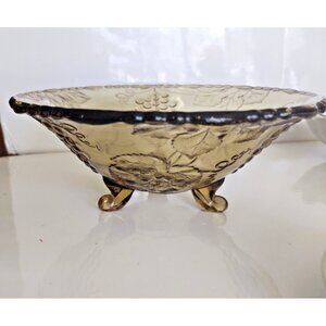 Vintage Amber Federal Glass Sunflower Grapes Three Legged Bowl Depression 8 5/8"