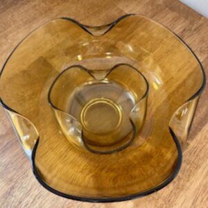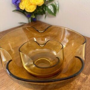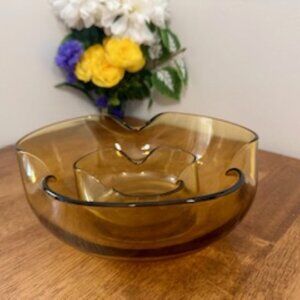 Vintage Amber Glass Chip and‎ Dip Set Mid-Century Modern Two-Piece Entertaining