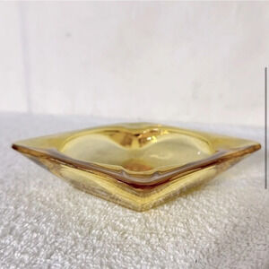 Vintage Amber Glass Square Ashtray Candy Dish Trinket Dish