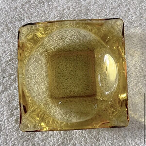 Vintage Amber Glass Square Ashtray Candy Dish Trinket Dish