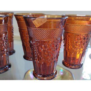 Vintage Amber Ca rnivalGlass Tumblers Berries & Lattice Pattern 4 1/4" Tall (set of 6)