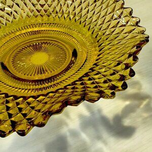 Vintage Amber Gold Federal Glass Bowl Decorative Ruffled Edges