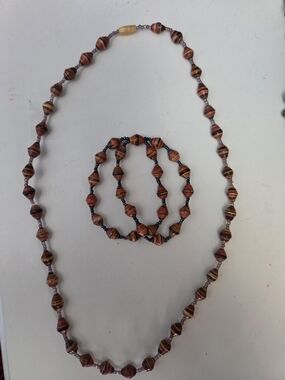 Vintage Amber and Gold Beaded Necklace And Earrings