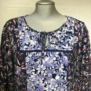 Vintage America Size XL Top Boho Floral Flowy Ties Cottagecore Hippie Purple