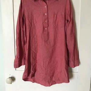 One of the best AA pieces I ever bought. Nice sturdy cotton and beautiful colour. Has pockets, falls to tunic length (mid/high thigh) and looks great. I find the fit on the shoulder was amazing, and looked really tailored. Slight discolouration in one area as shown in photos and reflected in price. Looks great with leggings and boots in fall. Sized XS but fits good to medium depending on your height and bust.