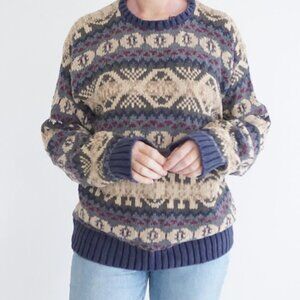 Vintage American Eagle Outfitters Taupe Blue Knit Eclectic Grandpa Crewneck M