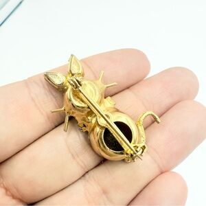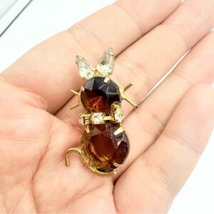Vintage Amethyst Cat Brooch with Rhinestone Collar