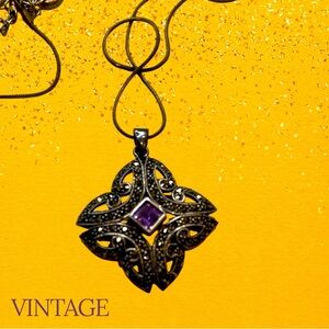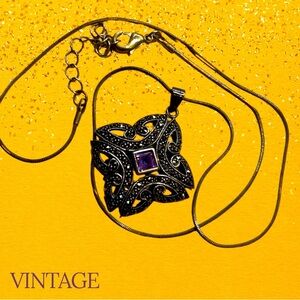Elegant vintage necklace featuring a black and purple pendant. Perfect for adding a touch of sophistication to any outfit. Does not have 925 on the back but I am 99% sure that it’s silver.