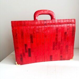 Vintage Amiet Patchwork Snakeskin Bright Red Briefcase Office Document Case
