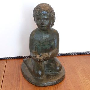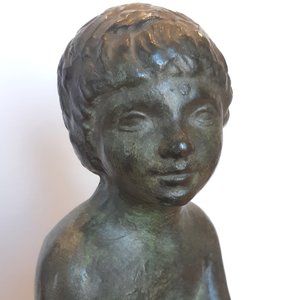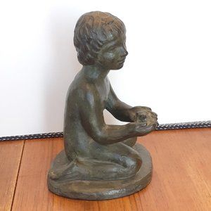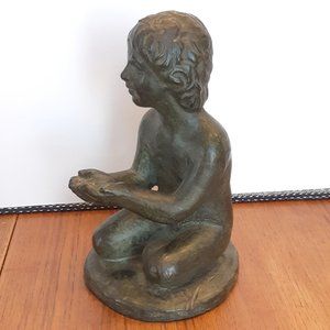 Vintage Amphora Statue - Kneeling Boy Holding a Frog in His Hands - Spain 1950