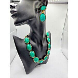 Vintage Amrita Singh glass green cabachon necklace and clip earring set
